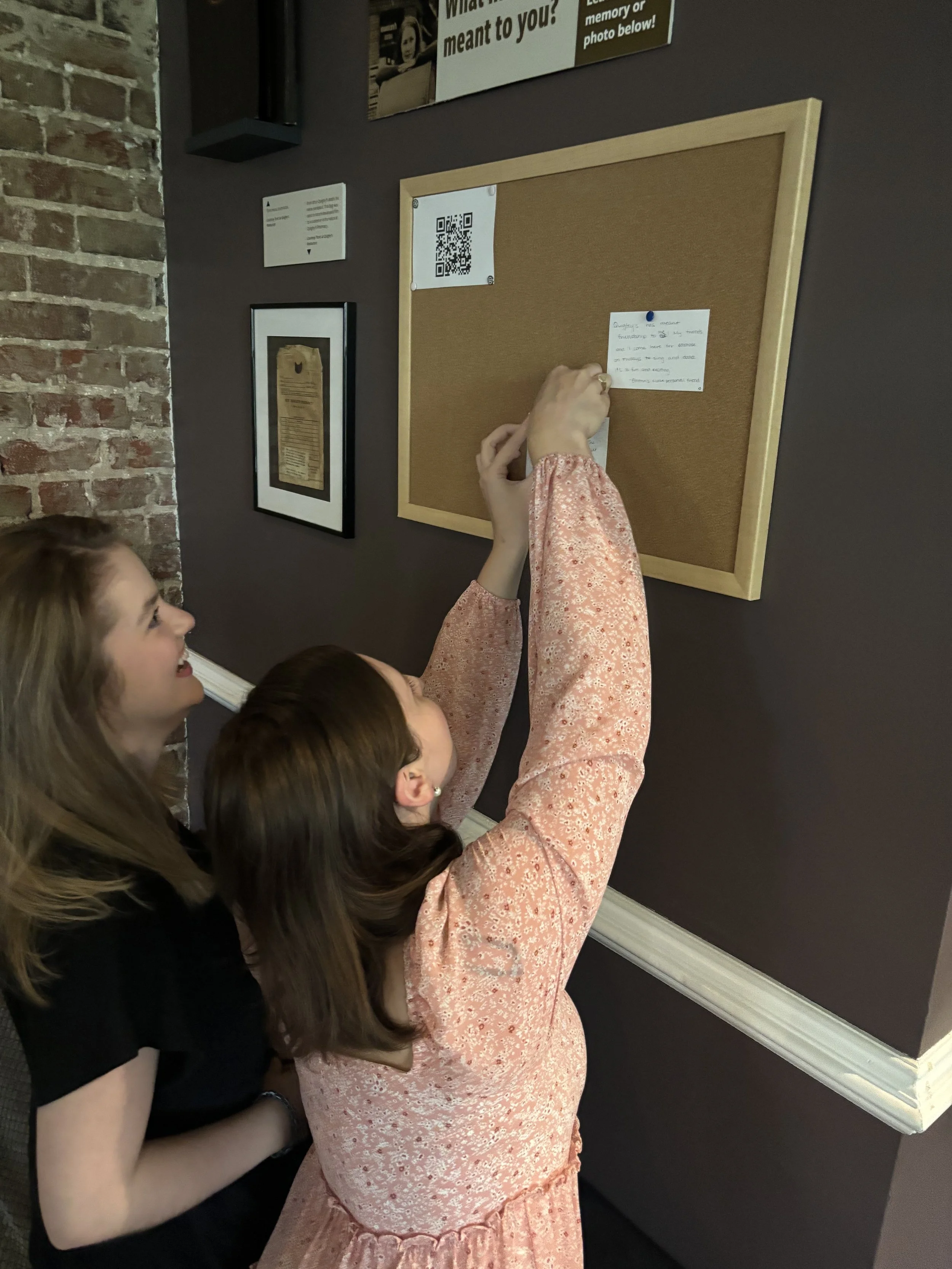 Guests pin cards with their responses to the question “What has Quigley’s meant to you?” Photo by Emma G. Brown.